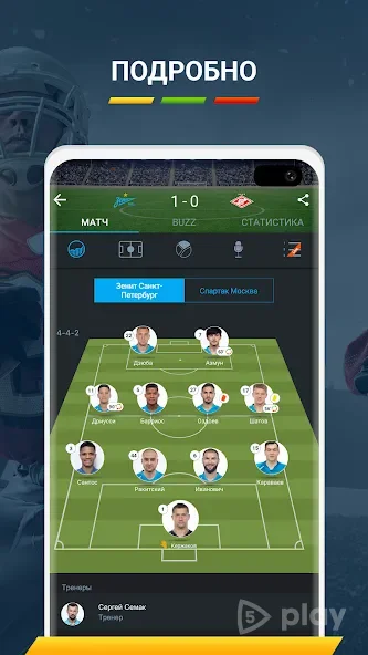 Приложение показывает матчи в реальном времени. Можно следить за несколькими играми одновременно. Уведомления приходят мгновенно: гол, удаление, жёлтая карточка. Повторы голов появляются уже через пять минут после события.