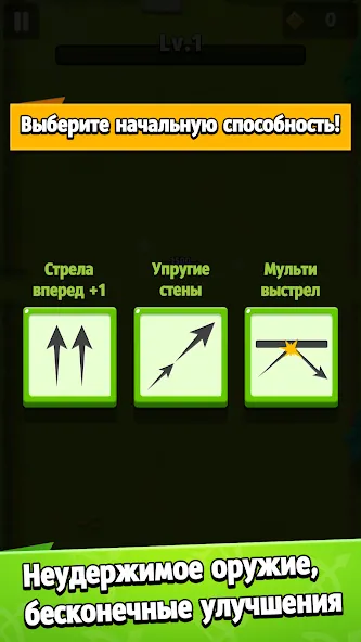Геймплей простой: двигаешься по локации, стреляешь из лука, уворачиваешься от атак. Враги идут волнами, между этапами можно выбрать улучшение — дополнительная стрела, щит, ускорение. Чем дальше проходишь, тем сложнее противники и боссы.