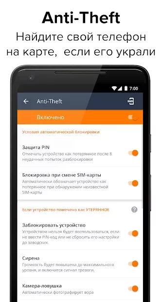 Фильтр звонков и SMS блокирует спам. Функция анти-вора позволяет заблокировать телефон удалённо, если его украли или потеряли. Брандмауэр контролирует трафик приложений, но для него нужны root-права. Счётчик трафика показывает, кто и сколько интернета жрёт.