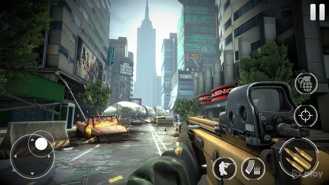 Кроме одиночного режима работает онлайн-мультиплеер. Там сражаешься с реальными противниками в динамичных матчах. Графика современная, управление стандартное для мобильных шутеров.