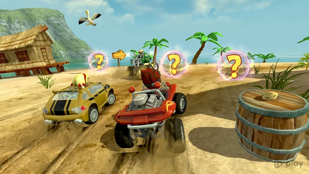 Мультяшные гонки на багги по пляжным трассам. Соперники не дремлют, а на дороге валяются бонусы и оружие. Нужно обгонять, стрелять и собирать монетки для прокачки машины.