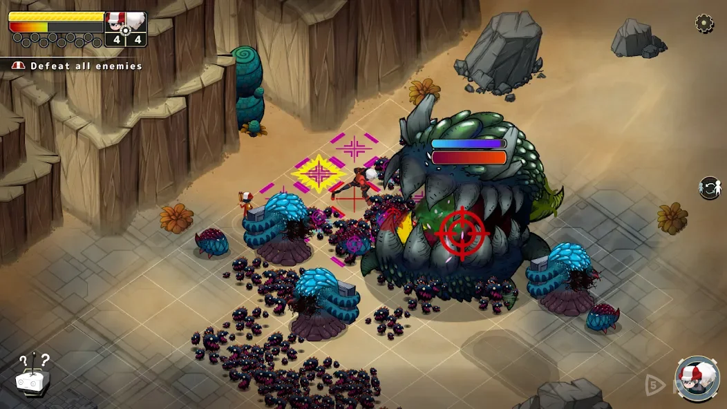 Есть система прокачки. Открываешь новых бойцов, улучшаешь их навыки, собираешь оптимальный состав под разные задачи. Уровни разнообразные, враги тоже меняются. Сюжет завязан на детской фантазии — главный герой справляется с реальными проблемами через воображаемые битвы.