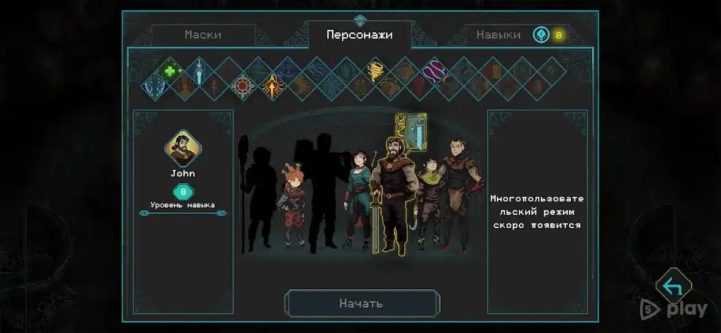 Пиксельная графика выглядит атмосферно. Музыка затягивает. Прогресс сохраняется между забегами — даже если персонаж погиб, семья становится сильнее. Открываются новые артефакты, улучшения, способности. Сюжет раскрывается постепенно, через диалоги и события между вылазками в подземелья.