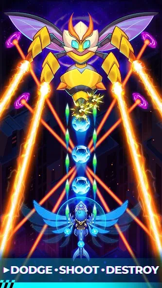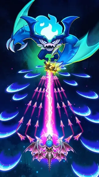 Игра построена на простой механике: летишь вперед, стреляешь, уворачиваешься от снарядов. Уровни проходят быстро, но с каждым новым становится плотнее — больше врагов, сложнее паттерны атак. Локации меняются от мрачных подземелий до воздушных замков, каждая со своими противниками.