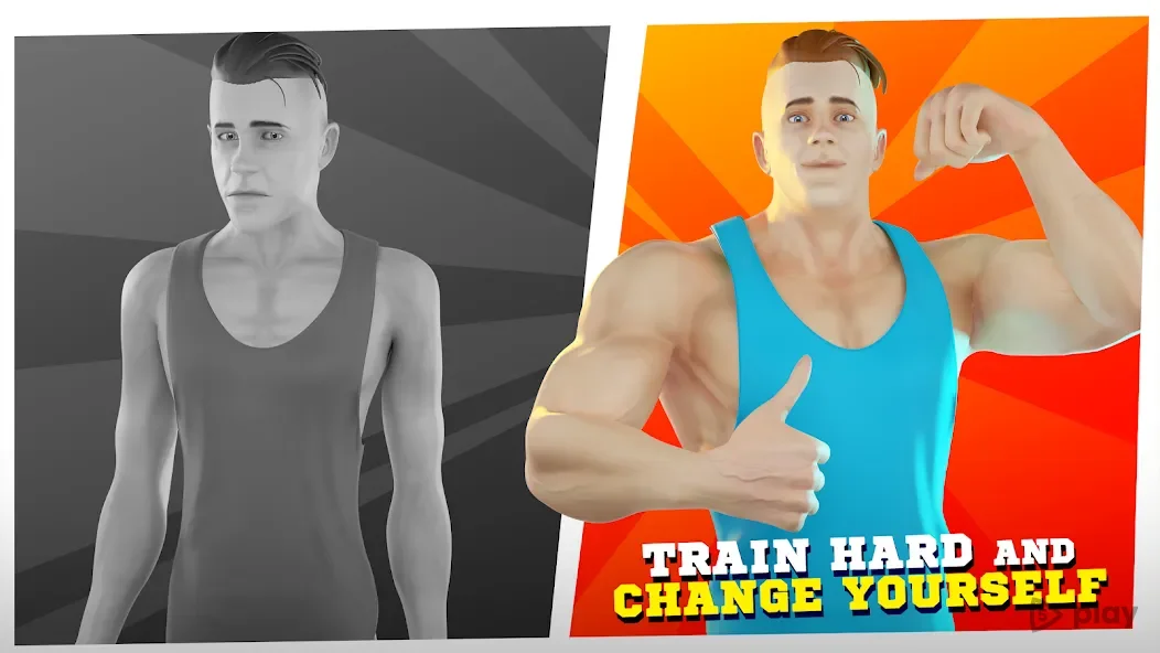Игра строится вокруг тренировок. Выбираешь тренажер, качаешь нужные группы мышц, смотришь как растет масса. Каждый снаряд работает на свою зону — руки, грудь, ноги. Прогресс виден сразу, персонаж меняется визуально.