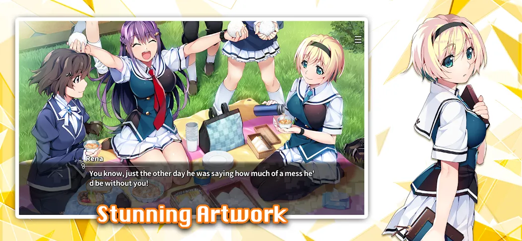 Геймплей простой: читаешь текст, иногда выбираешь вариант ответа или действия. Никаких сражений или головоломок. Чистая визуальная новелла с упором на историю и персонажей.