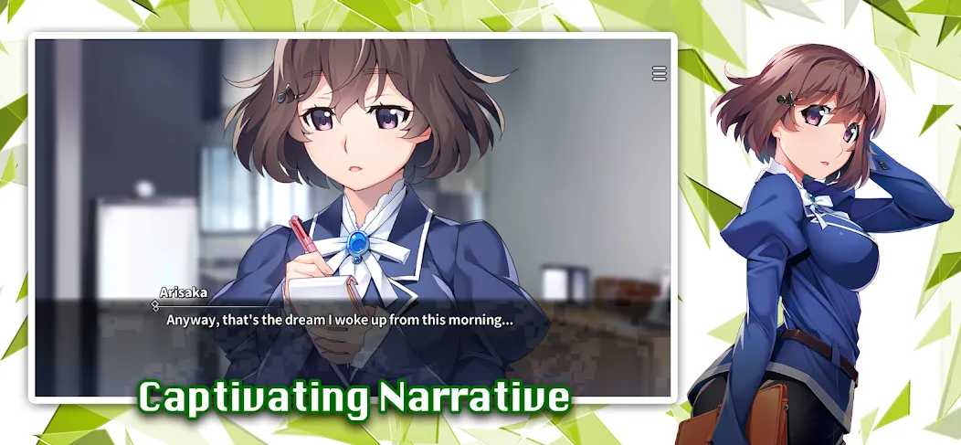 Игра строится на диалогах и решениях. Вы читаете, выбираете реплики, смотрите, как меняется сюжет. Несколько веток, разные концовки. Графика качественная, музыка атмосферная — классическая визуальная новелла в стиле серии.