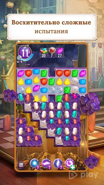 Классическая механика match-3 с волшебным антуражем. На каждом уровне нужно выполнить задачу — собрать определённые элементы, набрать очки или расчистить поле за ограниченное число ходов. В процессе игры открываются заклинания, которые помогают справиться со сложными участками.