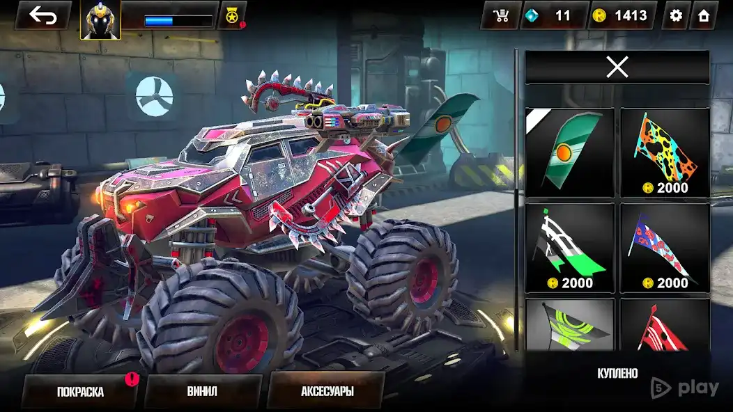 Машины открываются постепенно. Каждая со своими характеристиками: одна быстрая, но хрупкая, другая медленная, зато живучая. Выбираешь под свой стиль. Графика яркая, взрывы заметные, звук двигателя и выстрелов добавляет драйва.